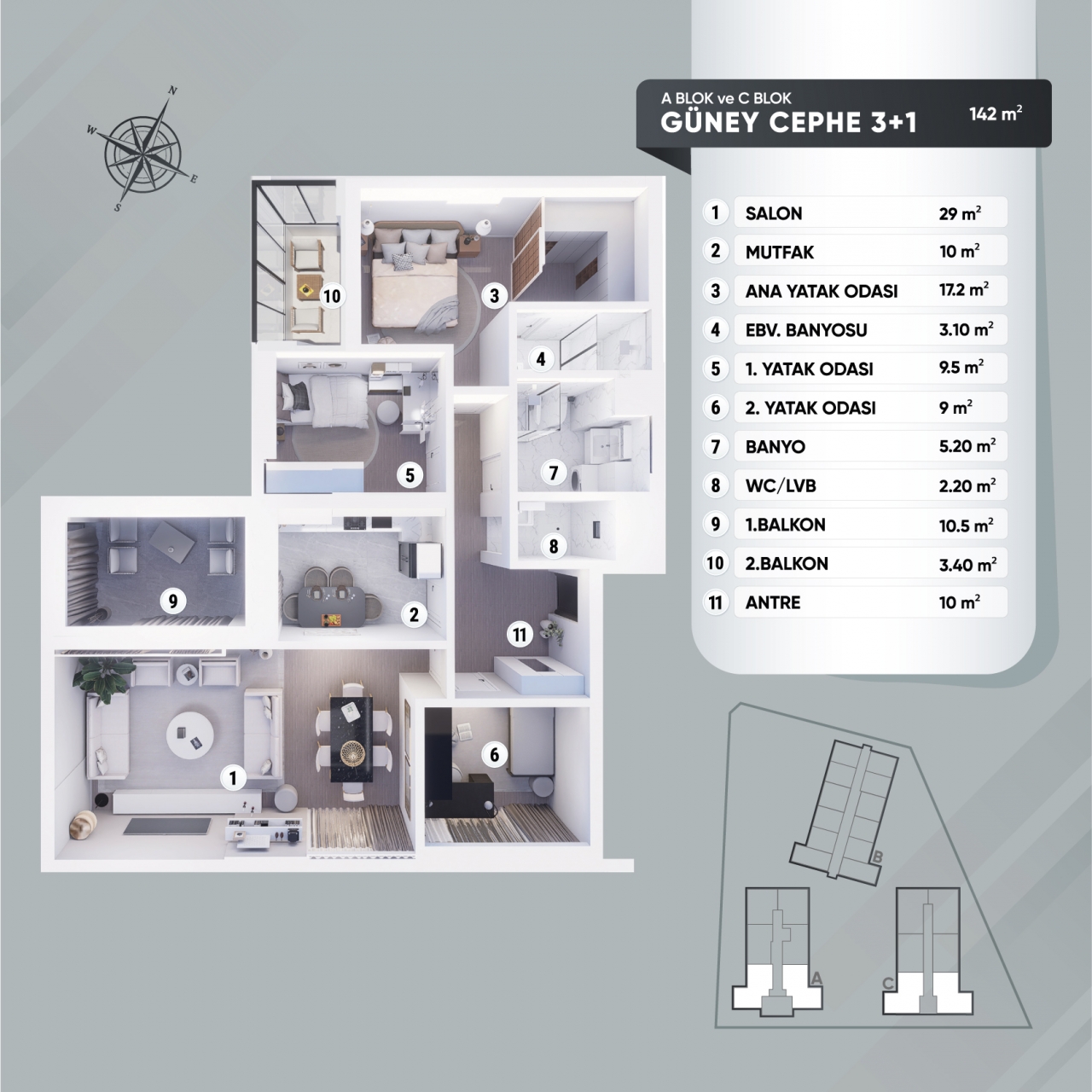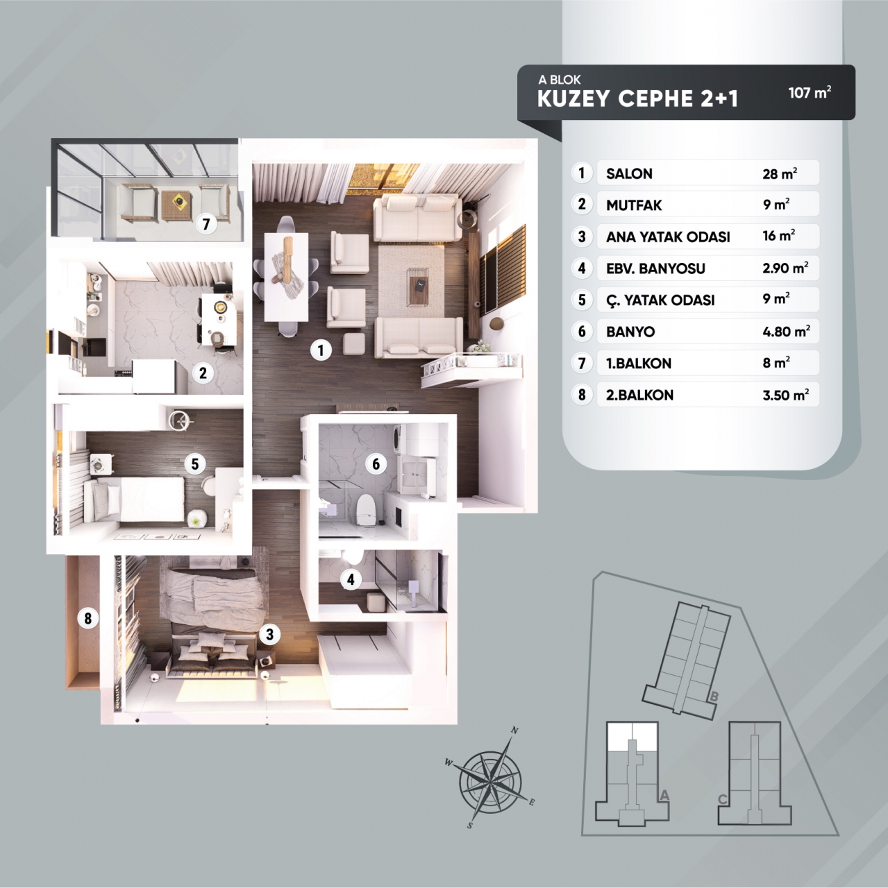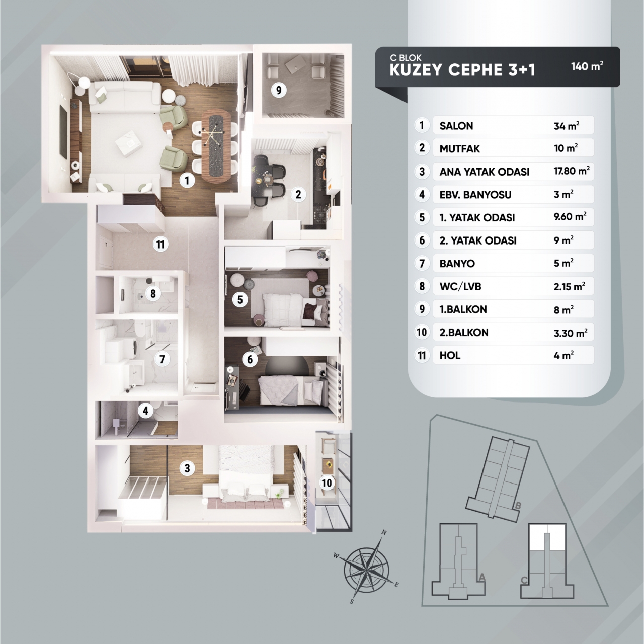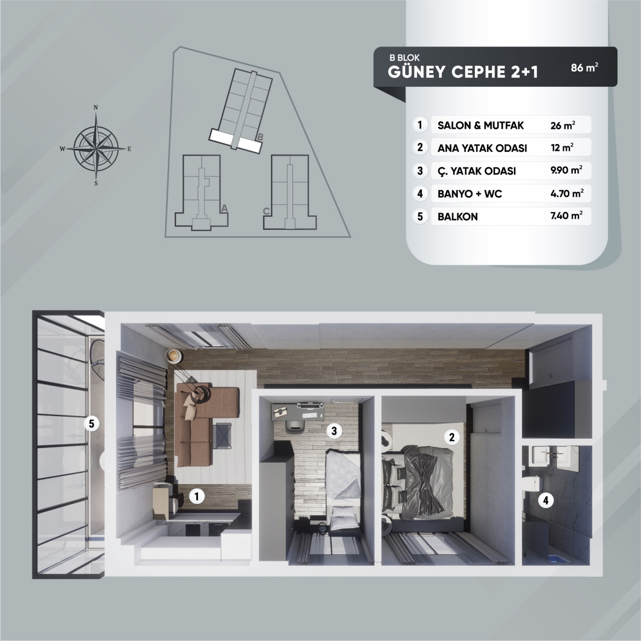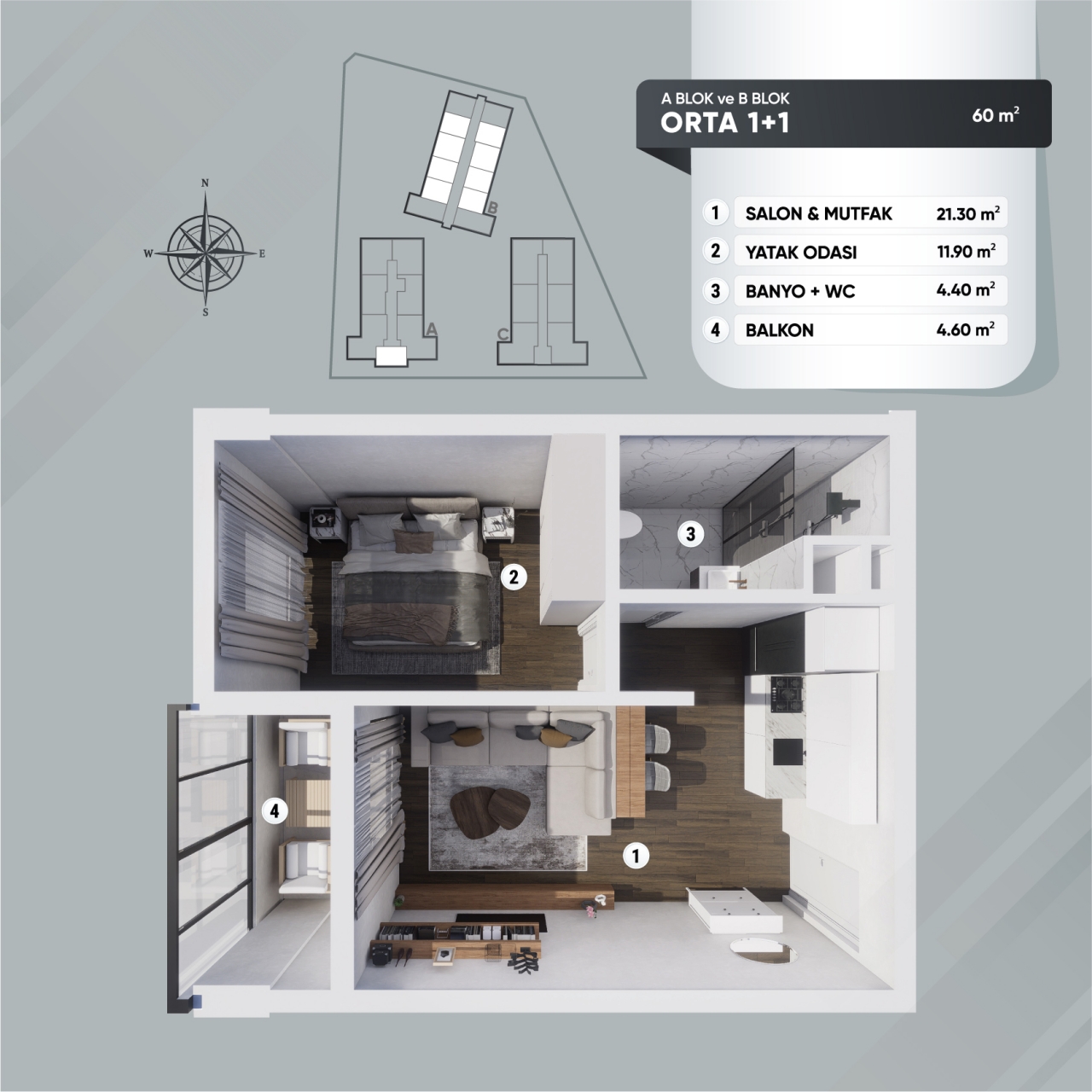 Her daire; ferahlık, manzara ve konfor öncelik alınarak tasarlanmıştır.